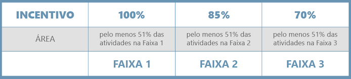 – Proporção de Incentivo: O valor total incentivado de um projeto dependerá da área da cidade onde serão realizados os projetos: